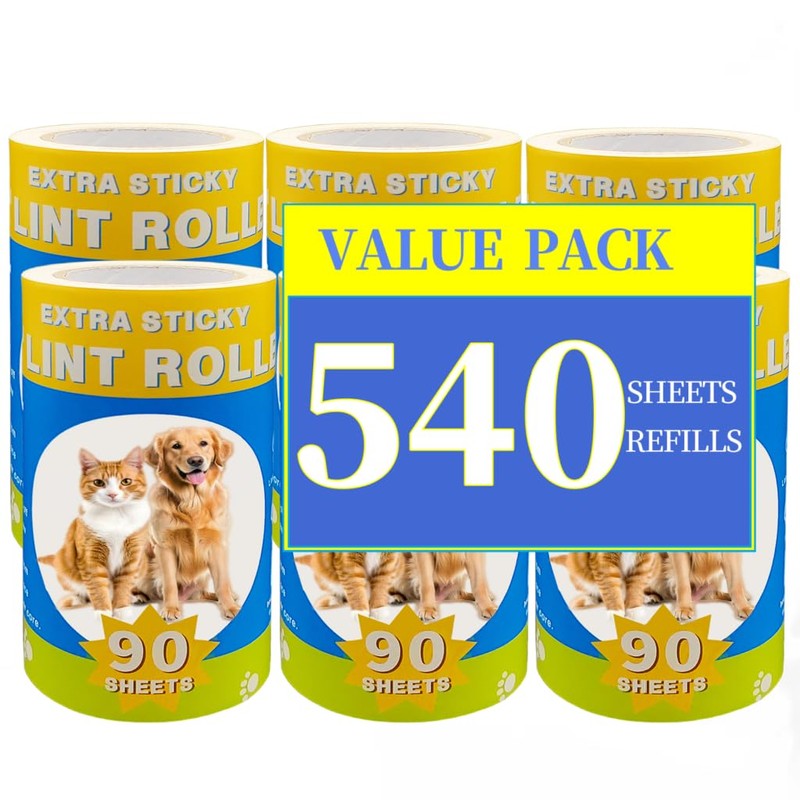 Lint Roller Refills 540 Sheets Extra Sticky Fluff Roller Supplement Paper Core Suitable for Pet Hair Dust Removal Lint Rollers Replacement