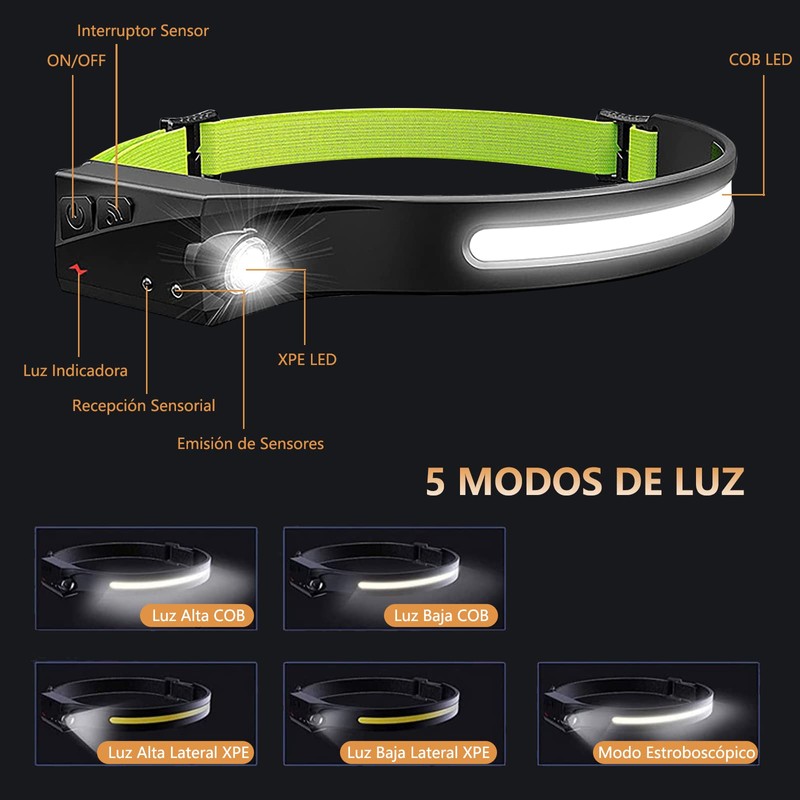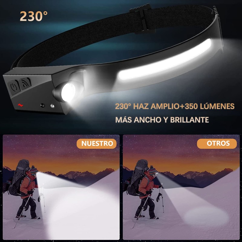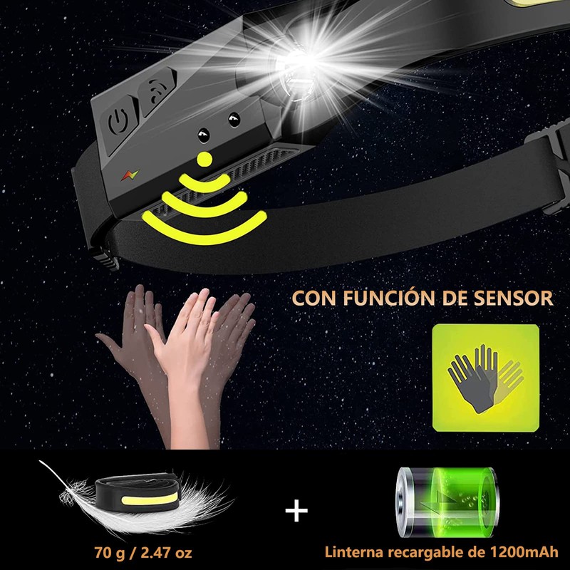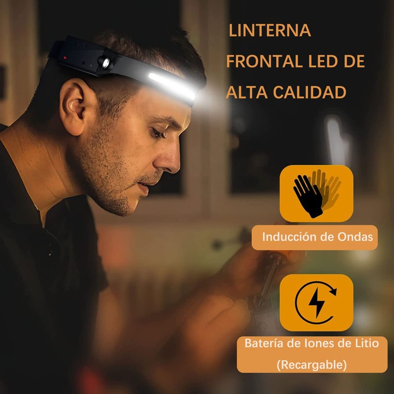Linterna de Cabeza, Linterna LED Recargable Frontal con Modo de Inducción, Lá...