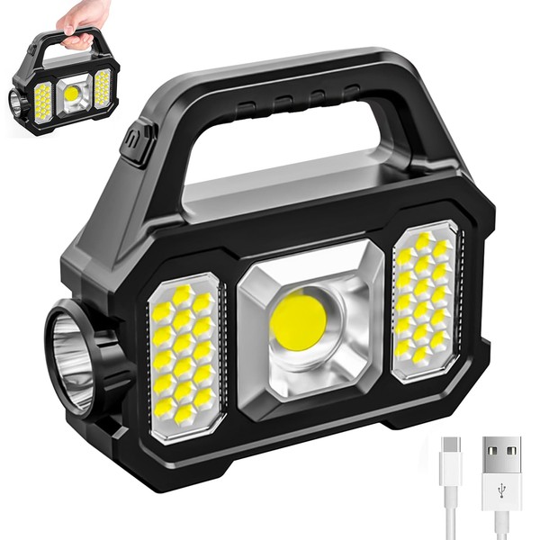 - Diseño Resistente y Duradero: Fabricada con material ABS de alta calidad, esta linterna está diseñada para soportar condiciones adversas. Cuenta con 4 luces indicadoras de carga para mantenerte informado sobre el estado de la batería y puede alcanzar hasta 1000 lúmenes de brillo.