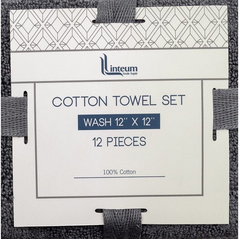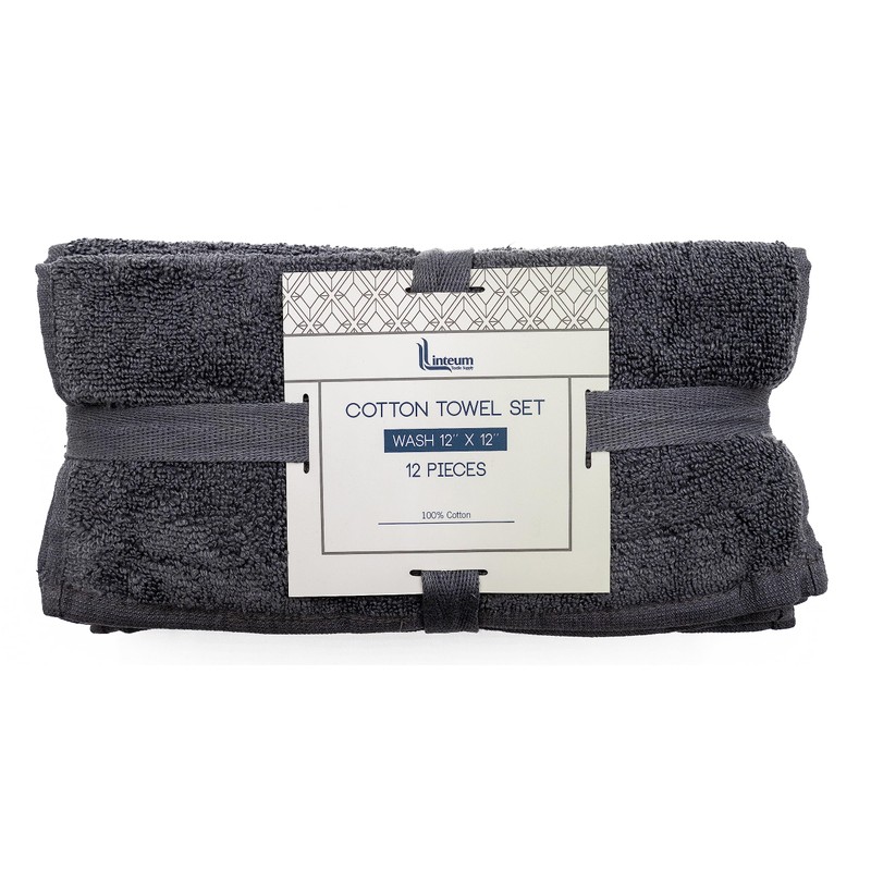 Linteum Textile 12 Piece Face Towel Set 100% Soft Cotton 16 Single Ring Spun Premium Durable Washcloths 12x12 Inch (Grey)