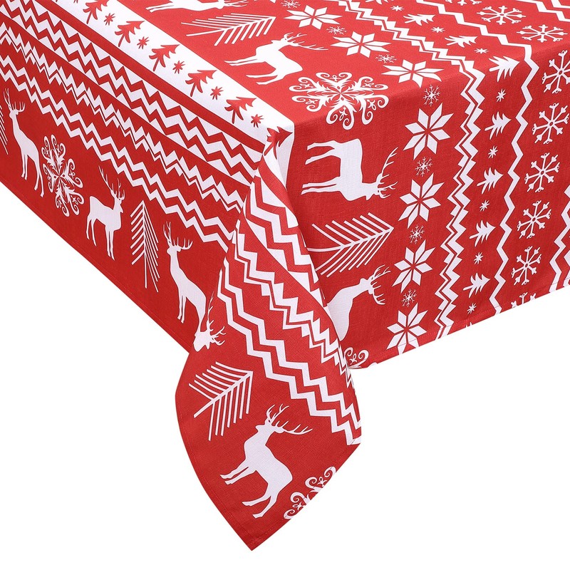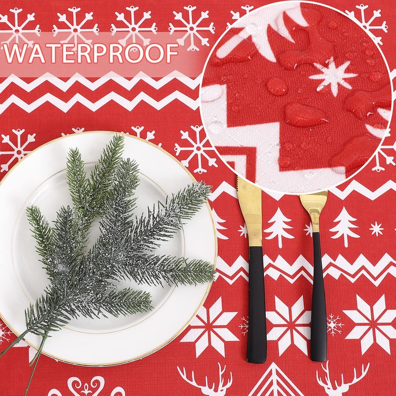 - WATERPROOF TABLECLOTH Our Christmas rectangular tablecloth is made of high quality extremely soft and smooth 100% polyester material. This tablecloth will protect your table and furniture due to its water resistant, wrinkle resistant and leak proof design.