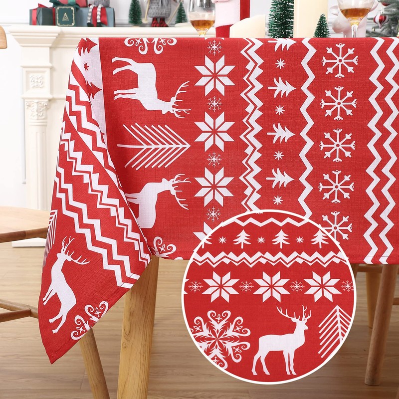 - Christmas Theme:Snowflake and Reindeer theme tablecloth for decorating dinner parties. The exquisite design makes it an eye-catcher whether at home or at the party.