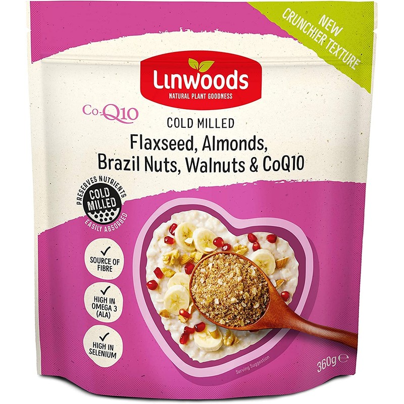Linwoods Milled Flaxseed, Almonds, Brazil Nuts, Walnuts and Co-q10 360g (Pack of 8)