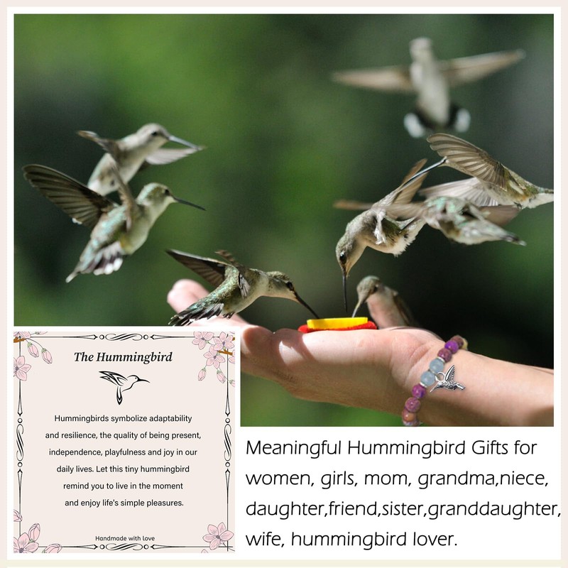 - Hummingbird Bracelet: Hummingbirds symbolize adaptability and resilience, the quality of being present, independence, playfulness and joy in ourdaily lives. When you wear this hummingbird bracelet on your wrist, just as a hummingbird encounters beauty with each new flower.