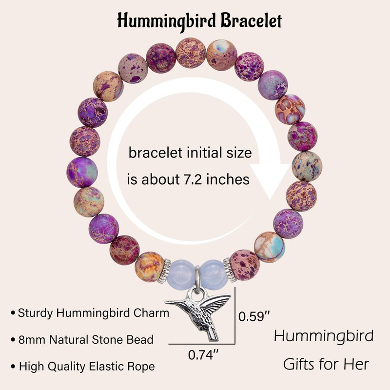 LINY Amethyst Hummingbird Bracelets Unique Hummingbird Gifts for Women with Meaning Card, Adjustable, Metal, natural stone