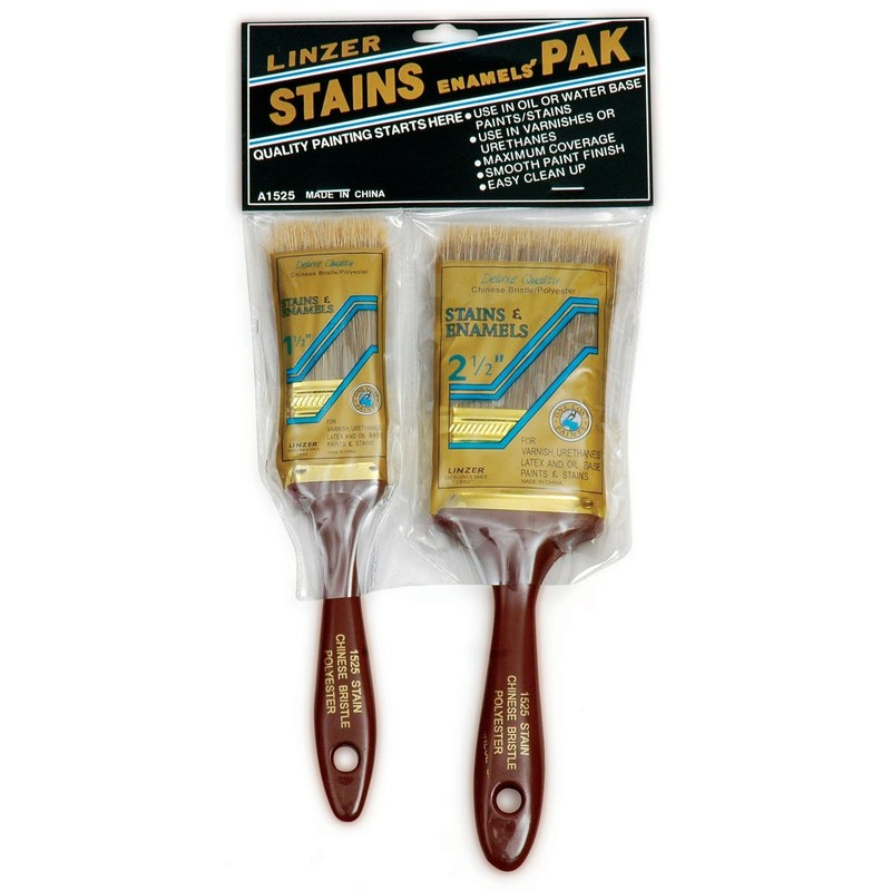 Linzer stain brush set, 2 pieces, includes: 1/2 in and 2 -1/2 in brushes, bristle/polyester filament, for use on oil or water-based paints/stains, varnishes or Urethane sit. Linzer products Corporation # a 1525. Linzer products Corporation has been providing excellence in the painting industry since 1892. We make paint brushes, roller covers, pad painters, tools and accessories for everyone from the professional to the first-time painter. We offer consistently high quality merchandise with a value unmatched in the industry. And we continue to develop new and exciting products for both professional and DIY painters.