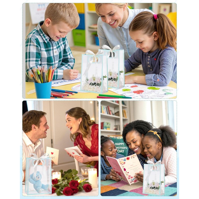 - Ribbon accessories: This clear plastic gift bags with handles also comes with a delicate ribbon that enhances the overall aesthetics. It is not only a simple decorative element, but also makes the handbag stand out among many ordinary bags.
