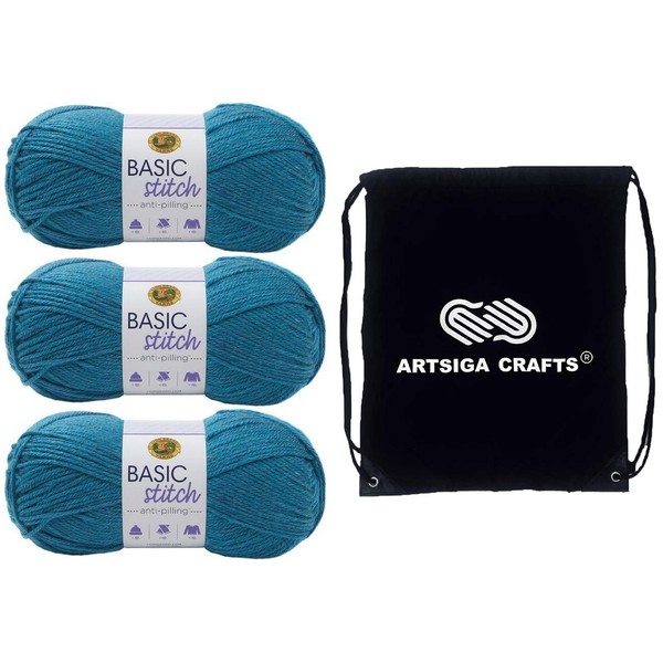 - Includes Lion Brand Knitting Yarn Basic Stitch Anti Pilling Turquoise Heather 3-Skein Factory Pack (Same Dye Lot) 202-405 with 1 Craft Project Bag
