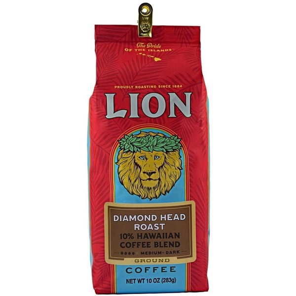 Lion Coffee, Diamond Head Roast, 10% Hawaiian Blend, Ground, 10 Ounce Bag