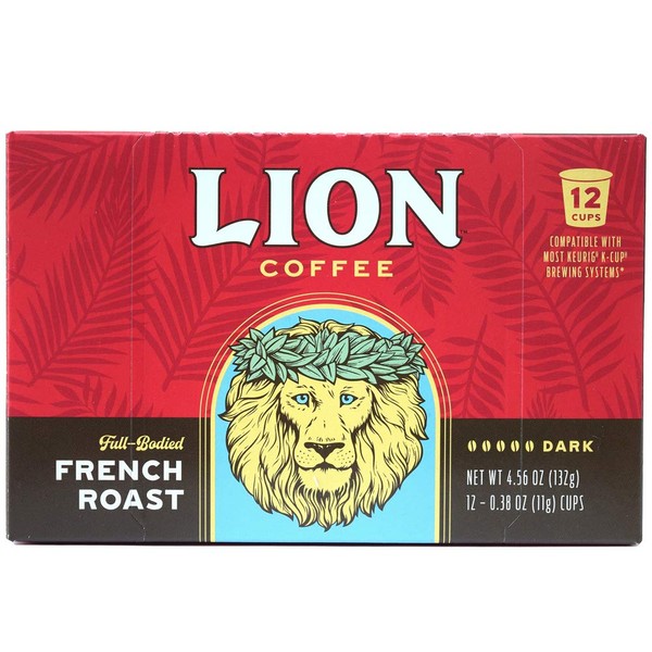 Lion Coffee French Roast, Single-Serve Coffee Pods - 12 Count Box