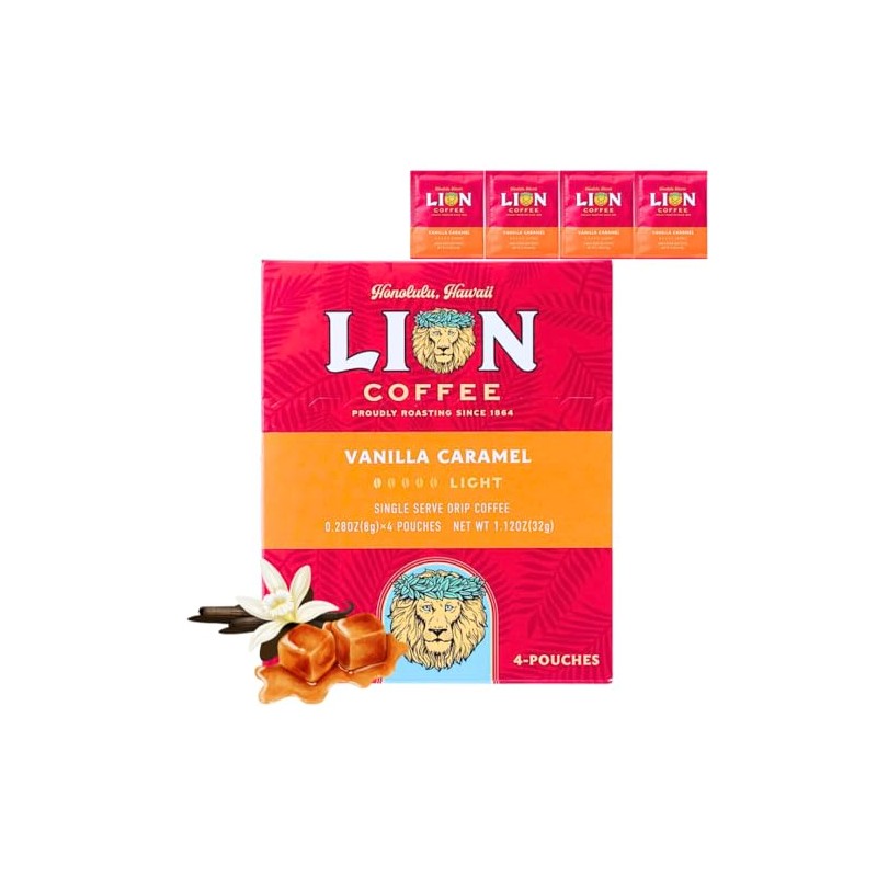 Lion Coffee Single Drip Vanilla Caramel 0.3 oz (8 g) x 4 P Flavored Coffee, Powder, Medium Grind