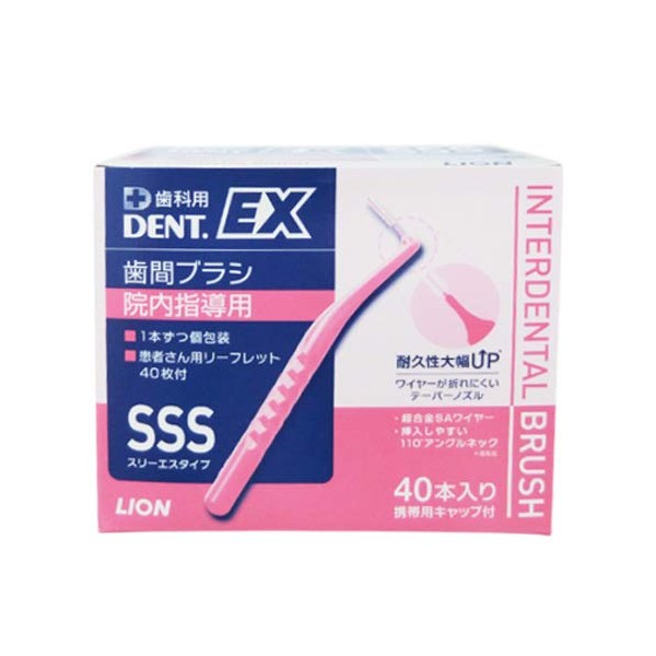 Lion DENT .EX Interdental Brushes, 40 Pieces, Hygienic Individual Packaging, SSS Pink