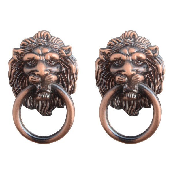 Lion Head Knobs Pull Dresser Drawer Cabinet Door Ring Head Pulls Antique Lion Head Pulls Knob (Red Copper Tone) 2Pack