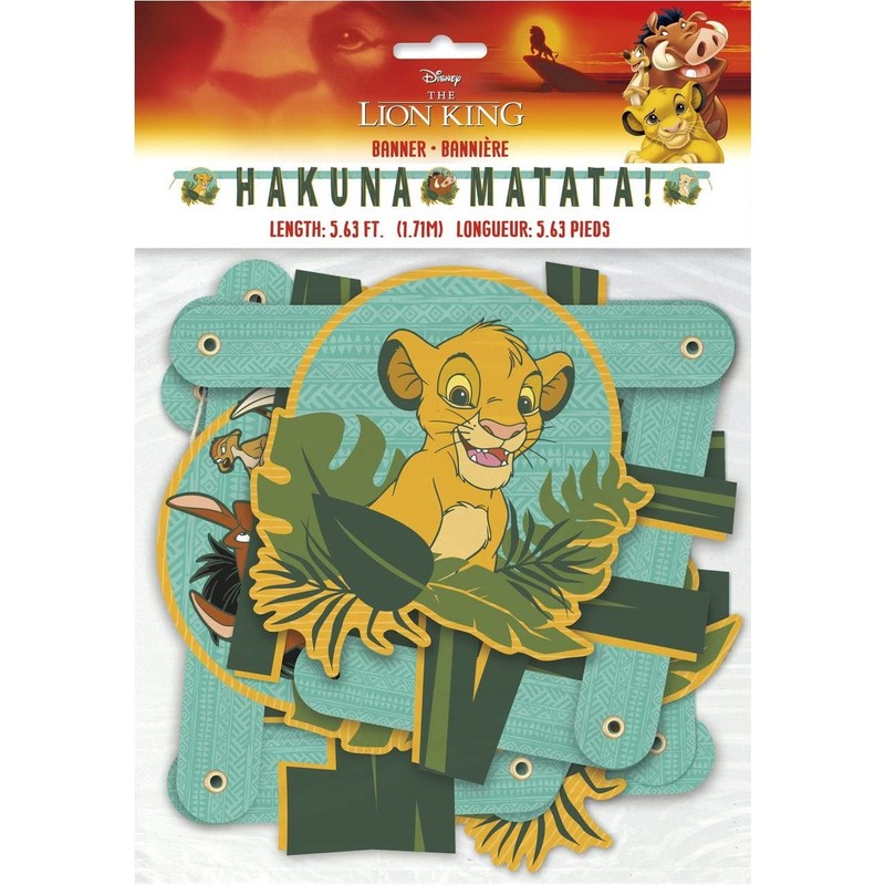 - LIVELY DESIGN: Make the party livelier with this banner that features letter cutouts that spell out "Hakuna Matata" with Disney Lion King-themed design.
