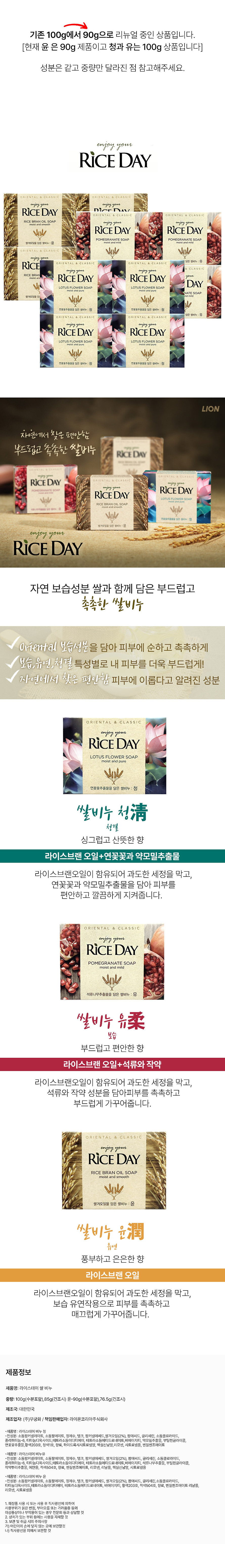 라이온 라이스 데이 쌀 세수 비누 청 100g 4개입