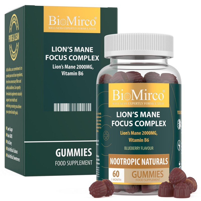 Lion’s Mane Focus Complex Gummies – Blueberry Flavour – 2000mg – x60 Vegan Gummies – 1 Month Supply – No Added Sugar