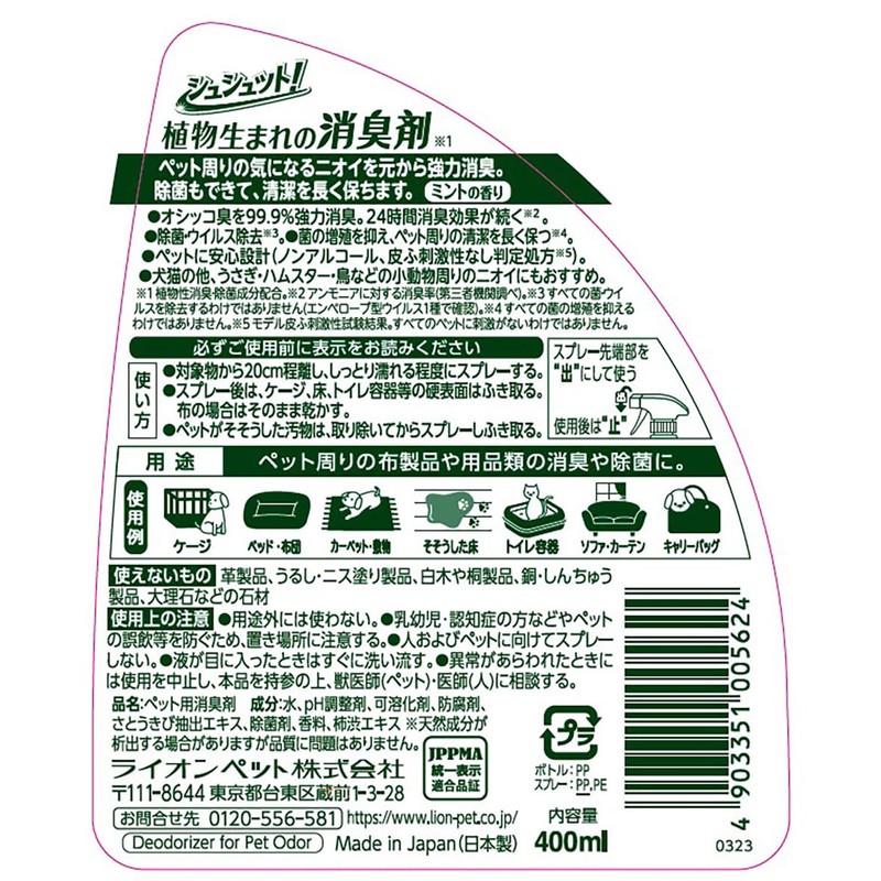 Lion Shut! Plant-born Deodorizer, Mint Scent, Main Unit, 13.5 fl oz (400 ml)