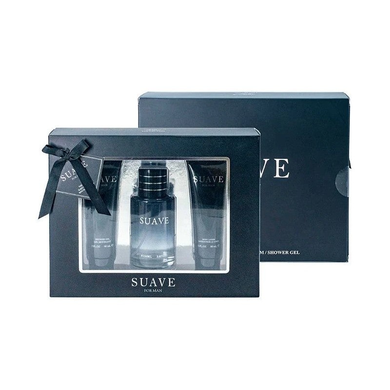 Elevate your grooming routine with the Suave Men's Cologne Gift Set, a refined collection designed for the discerning gentleman. Centred around a striking 110ml Eau de Parfume, this collection pairs a revitalising 90ml Shower Gel with a silky 90ml Body Lotion to create a cohesive fragrance experience. The complementary formulations work in harmony to enhance your natural presence whilst nurturing skin throughout the day. Ideal for the confident gentleman seeking a complete grooming solution that reflects his refined taste and distinctive character.