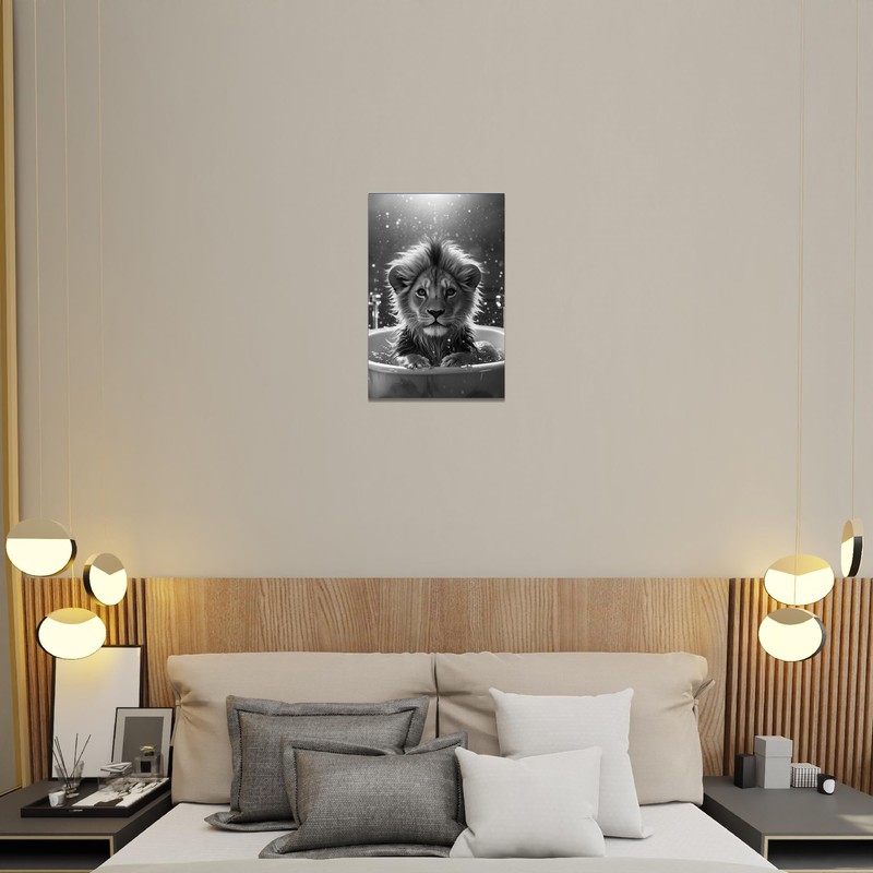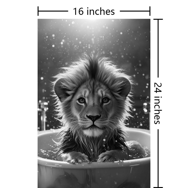 Lion Wall Art for Bathroom, Black and White Canvas Wall Decor, Animal Picture Print, Size 16x24 Inches