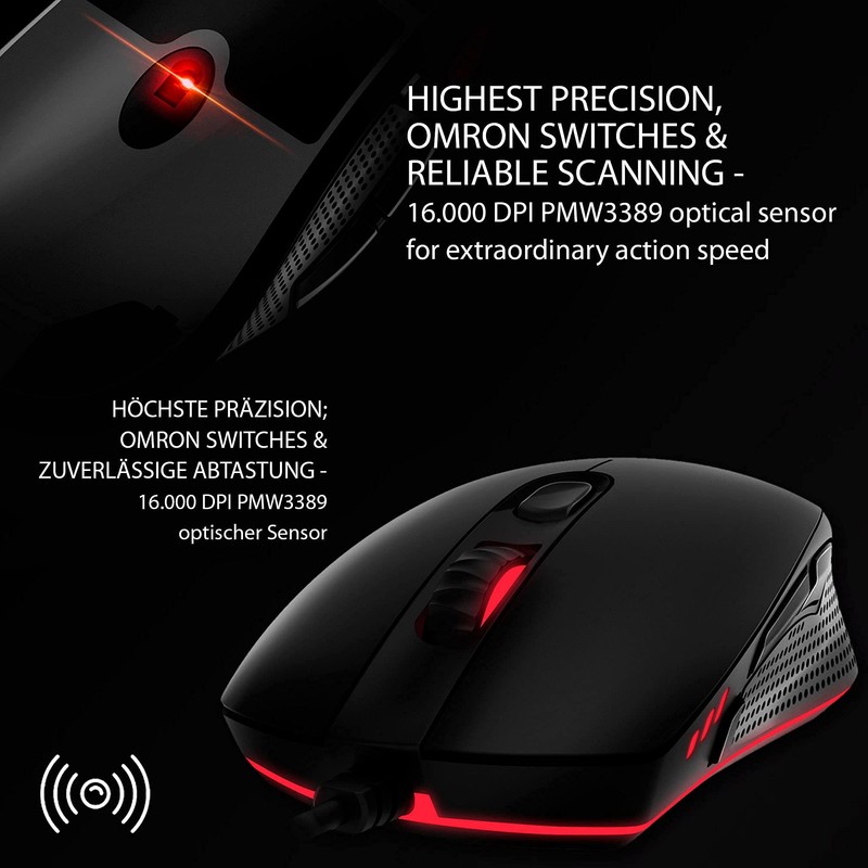 - 🖱️ COMPLETE YOUR GAMING SETUP - Make your gaming station stand out in no time. The mouse's logo, mouse wheel, DPI indicator, and bottom ring lights may shine in 16.8 million different colours.