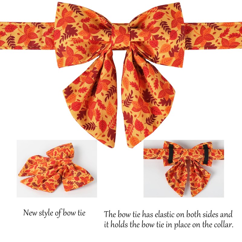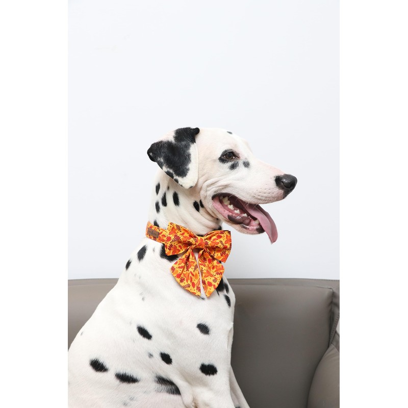 Lionet Paws Dog Collar with Bowtie - Cute Cotton Adjustable Fall Bowtie Dog Collar with Metal Buckle for Small Medium Large Dog Girl Boy Gift, S, Neck 10-16in