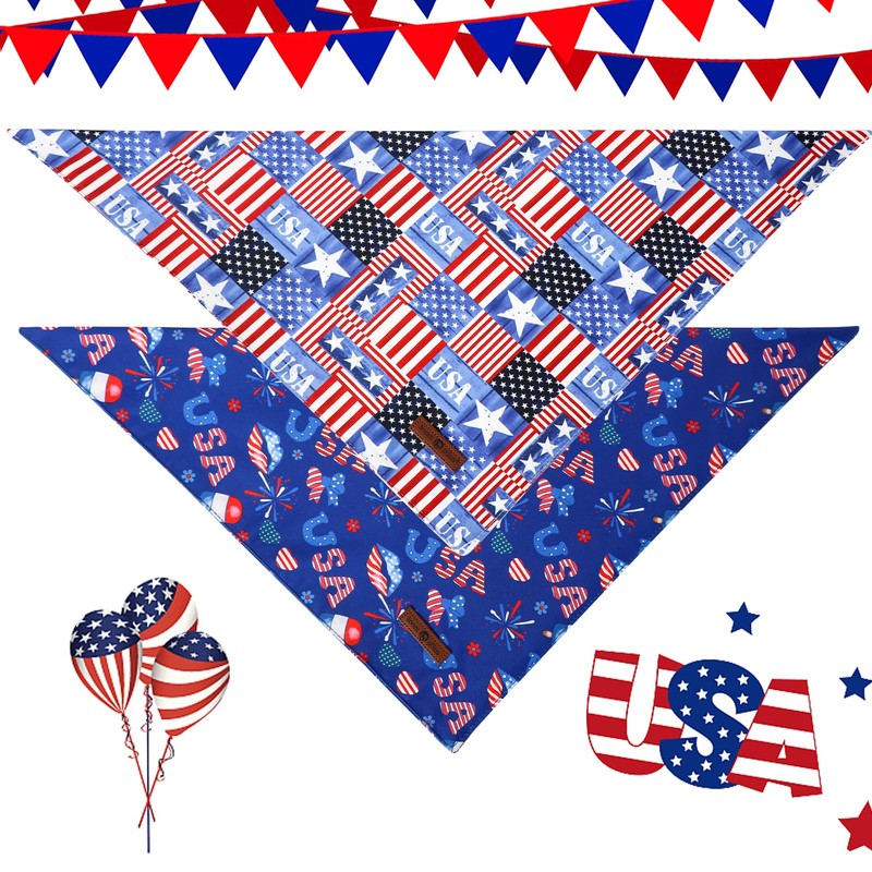 - SIZE : Package includes 2PCS Large (21X21X30") fouth of july Dog Bandanas. XL size fits neck up to 21", great size for Medium, Large and Extra Large Dogs. From French bulldog to German Shepherd. It is triangle shape dog scarf, pretty adjustable, as you can tie them where you want them. Please allow 1in tolerance.
