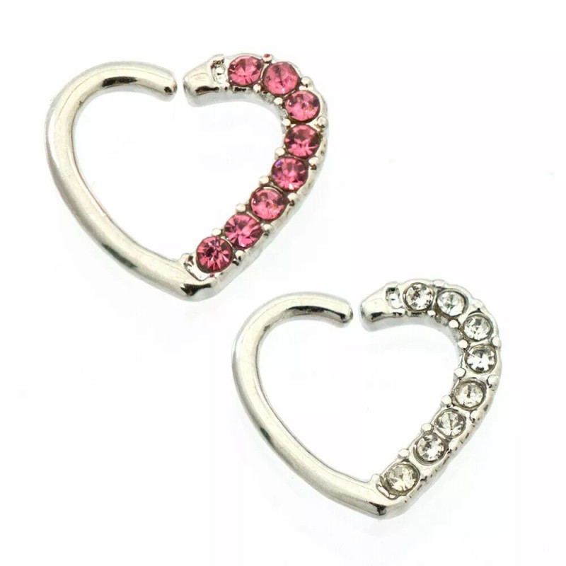 LionGothic Pack of 2 Ear Cartilage with Heart shape and Cubic Zirconia Left ear 16G