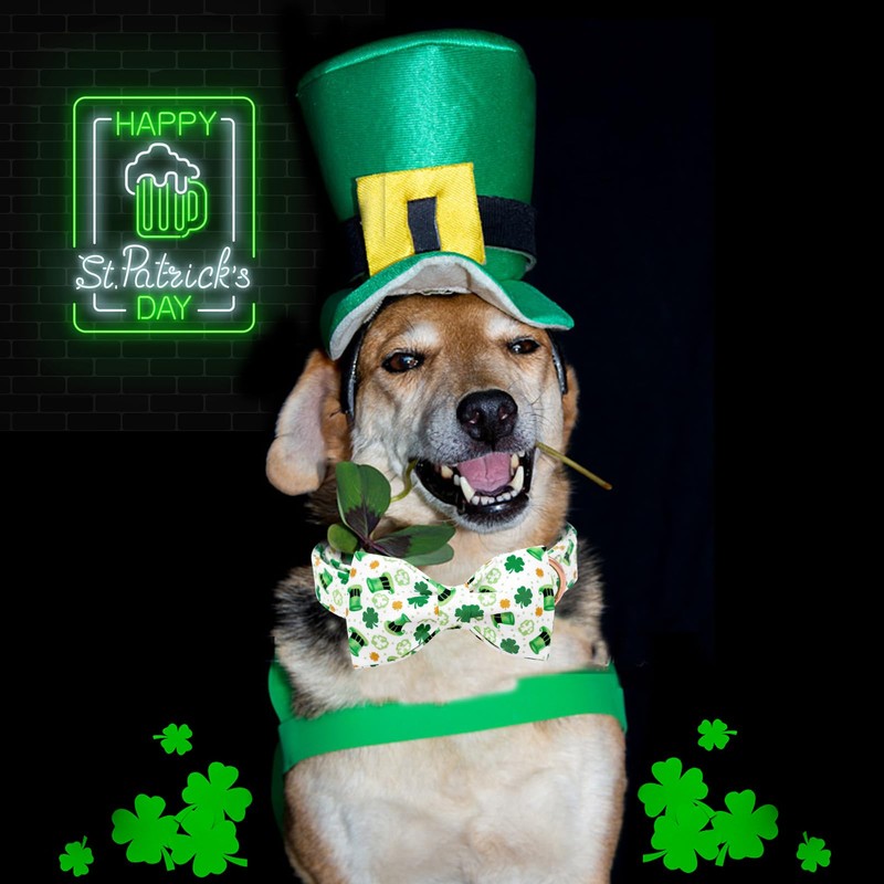 Lionheart glory Dog Bow Collar St. Patrick's Day Dog Collar for Large Dogs, Adjustable Green Collars Lucky Clover Shamrock Dog Collar with Bowtie Pet Collar Bows