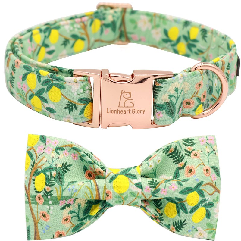 Lionheart glory Floral Dog Collars Bowtie Dog Collar, Adjustable Heavy Duty Girl Dog Collar with Bow for Medium Dogs