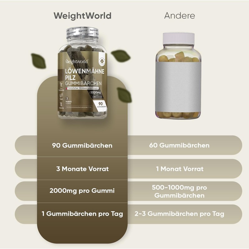 Lions Mane Mushroom Gummy Bears – 90 Vegan Gummies, 2000 mg per Serving, Natural Raspberry Flavor