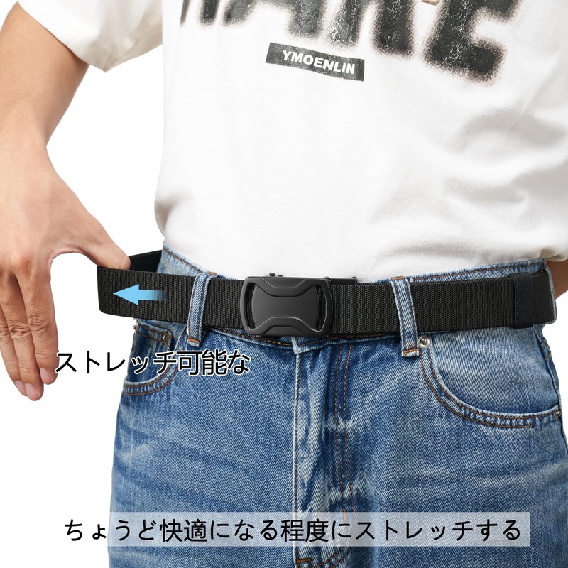 LionVII Belt, Men's, Extendable, Auto Lock, Nylon Belt, Work, Sports, Climbing, Golf, Outdoor Belt, Stretchable, No Holes, Stepless Adjustment, Alloy Automatic Buckle, Width 1.4 inches (35 mm) Length