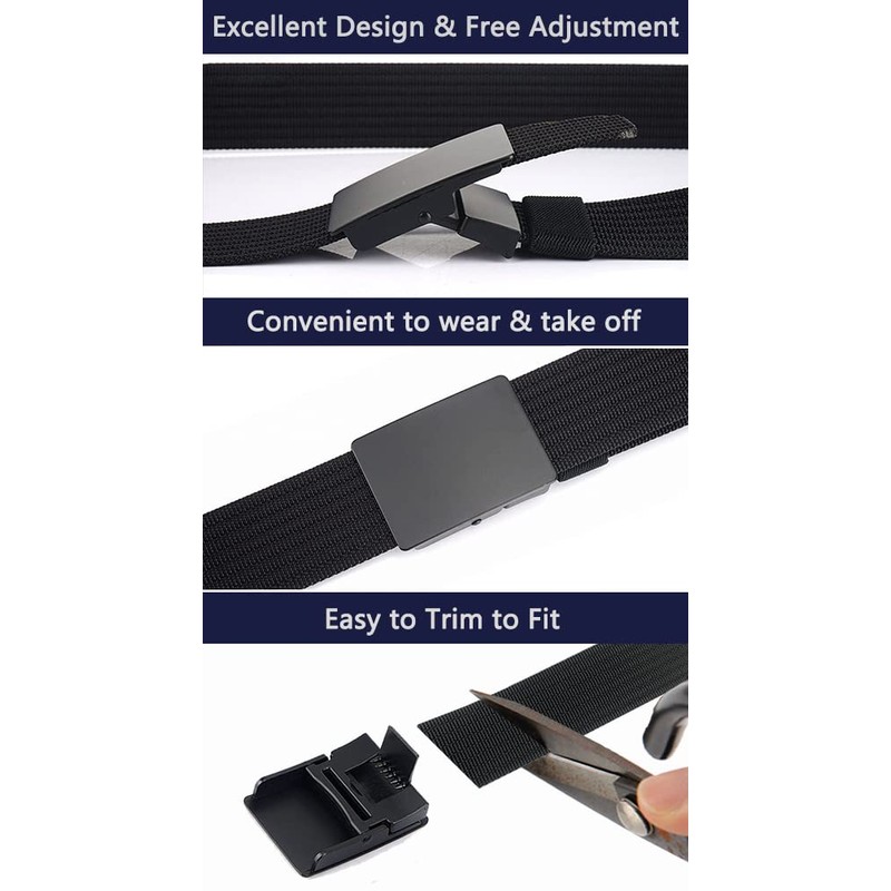- Fully Adjustable for Your Size: You can precisely adjust your belt to the perfect fit. Automatic Buckle,no holes in belt. ◆If the Strap is too long for you, you can trim the strap length to fit your own size. ◆This Nylon Belt Is Suitable for Pant Size Below 46inches Such as 32- 46in.