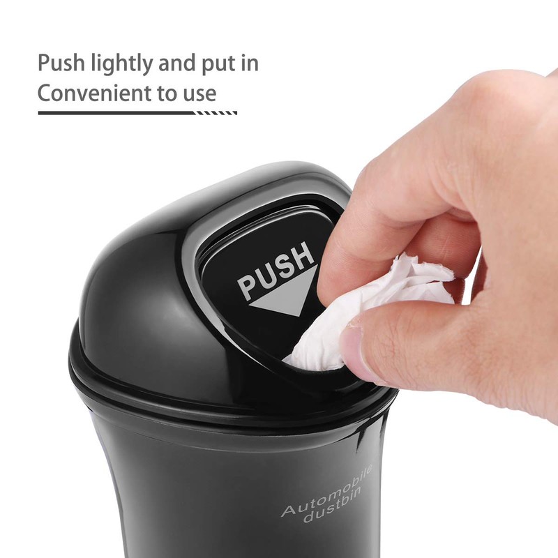 LIOOBO Mini Car Trash Can Bin with Lid Auto Dustbin Organizer Leakproof Vehicle Trash Bin Garbage Can (Black)
