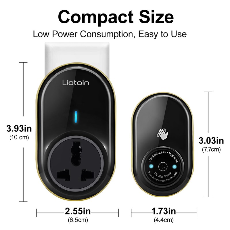 • Wireless Doorbell Kit: 1 Plug-in Low-power Doorbell Receiver with an Extra Socket to Solve the Problem of Doorbell Occupying the Socket, 1 Induction Doorbell Button, No Need to Touch the Button, Objects or Hands Close to 5-10cm Can Transmit Signals to Avoid Contact Infection