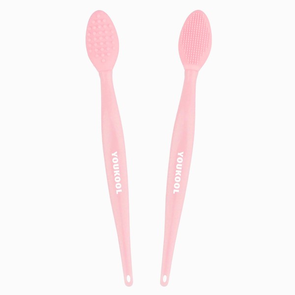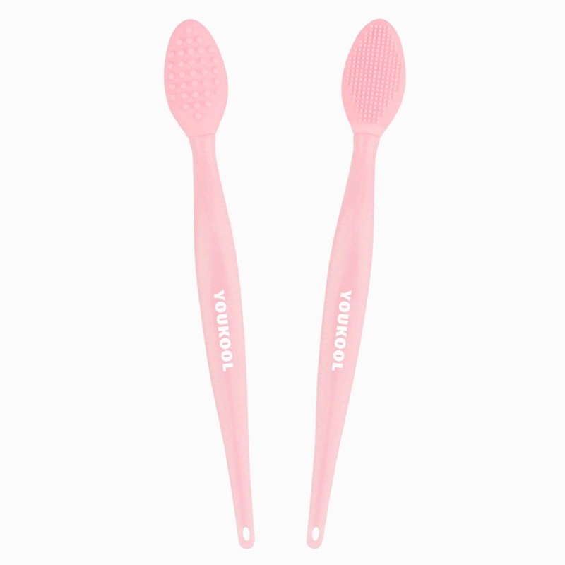 Lip Scrub Brush,Double-Sided Silicone Exfoliating Lip Brush Tool for Smoother and Fuller Lip Appearance,Pink,2pcs