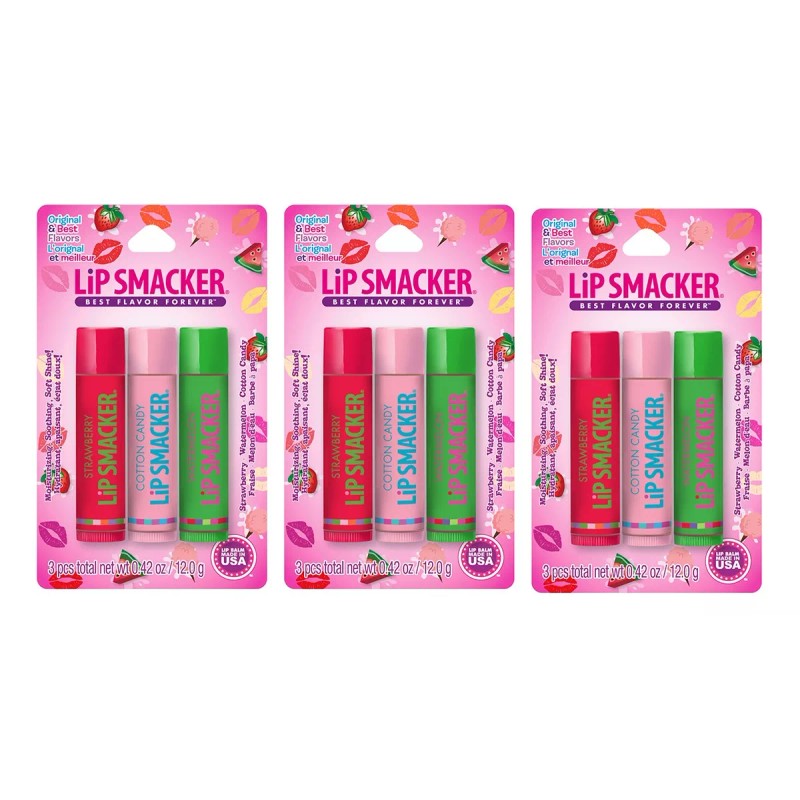 Disfruta de los sabores clásicos de Lip Smacker que conoces y adoras en este original y el mejor Lip Smacker Trio. Sabores: Strawberry, Cotton Candy Watermelon