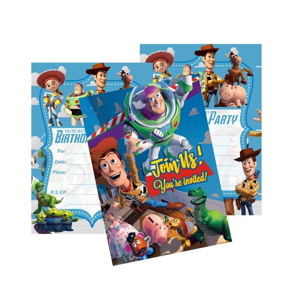 - 1.Package : Includes 24 pieces of Toy Story Buzz Lightyear Invitation Cards ,size of 4.2 x 6". Each card is double-sided printed and has an ample fill-in space design for filling in your own personalized wording.Packed in one OPP bag( NO envelopes).