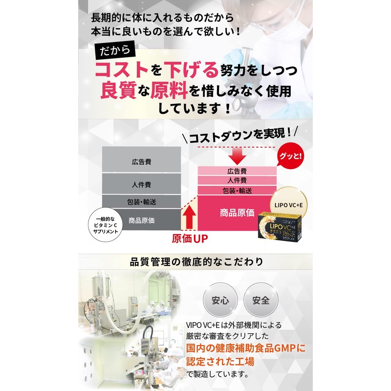 - 【徹底的な高品質】日本製(原材料に一部中国製造のものを使用していますが、日本国内製造です)毎日飲むものだからこそ、GMP認定工場での製造はもちろん、徹底的に品質にこだわったリポソームビタミンC&ビタミンE。成分分析試験実施済み!