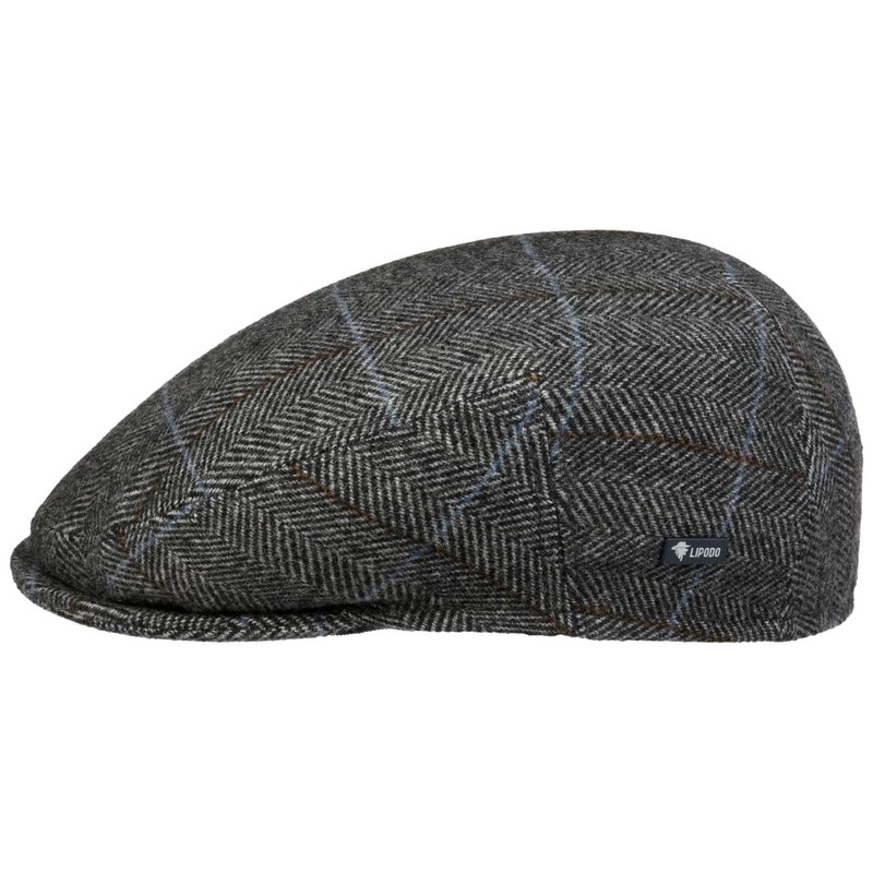 Lipodo Men's Flatcap with Checked Pattern, Lined Wool, Size 49 - 61 cm with Peaked Cap, Autumn / Winter - 57 cm