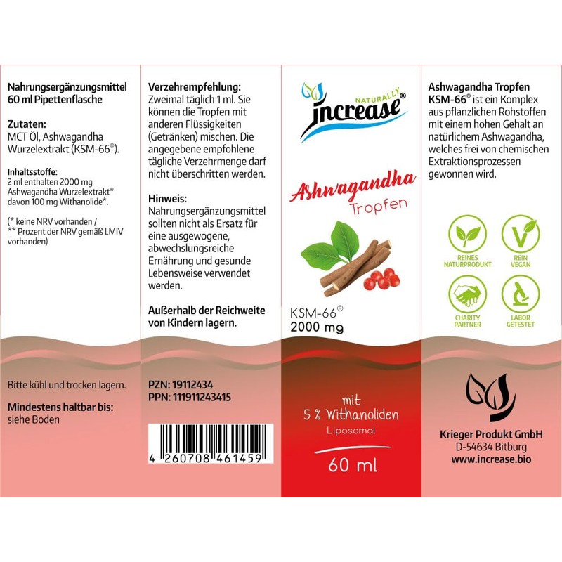 - INCREASE top quality – Our Ashwagandha drops are manufactured without additives of by-products exclusively in compliance with the strict purity law. Order now and see for yourself!