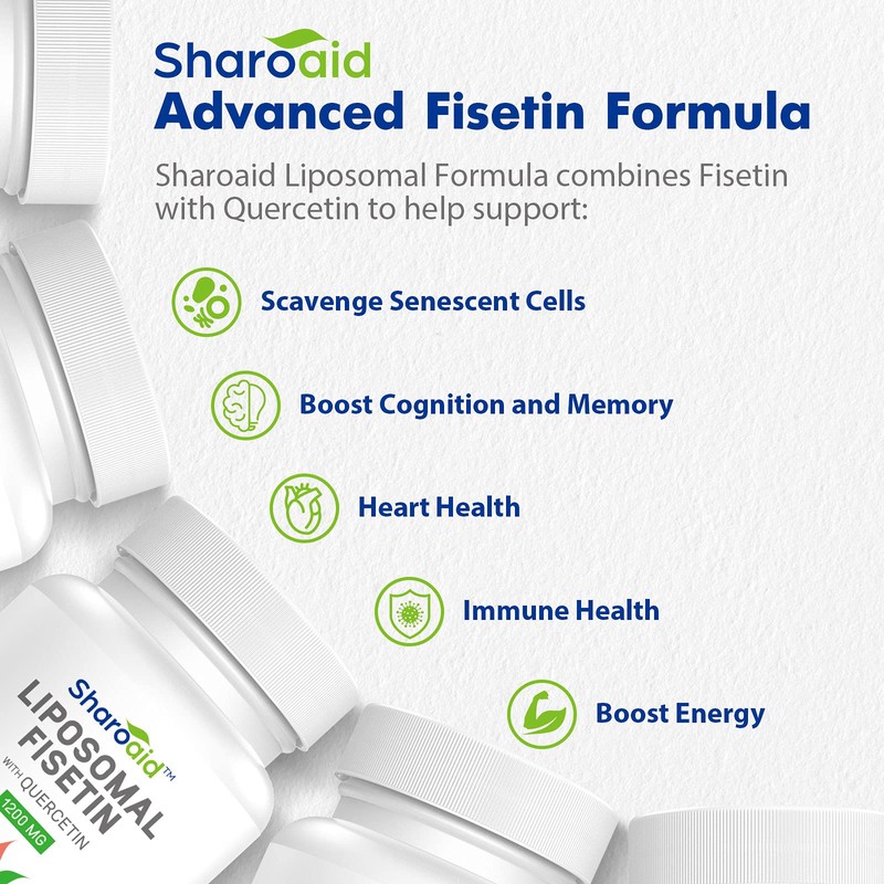 - Advanced Fisetin Formula: Fisetin & Quercetin are dietary antioxidants widely distributed in the fruits, vegetables. The combination of fisetin and quercetin proves excellently synergistic in supporting healthy aging. Every serving of Sharoaid liposomal supplement contains 1000mg fisetin and 200mg quercetin.