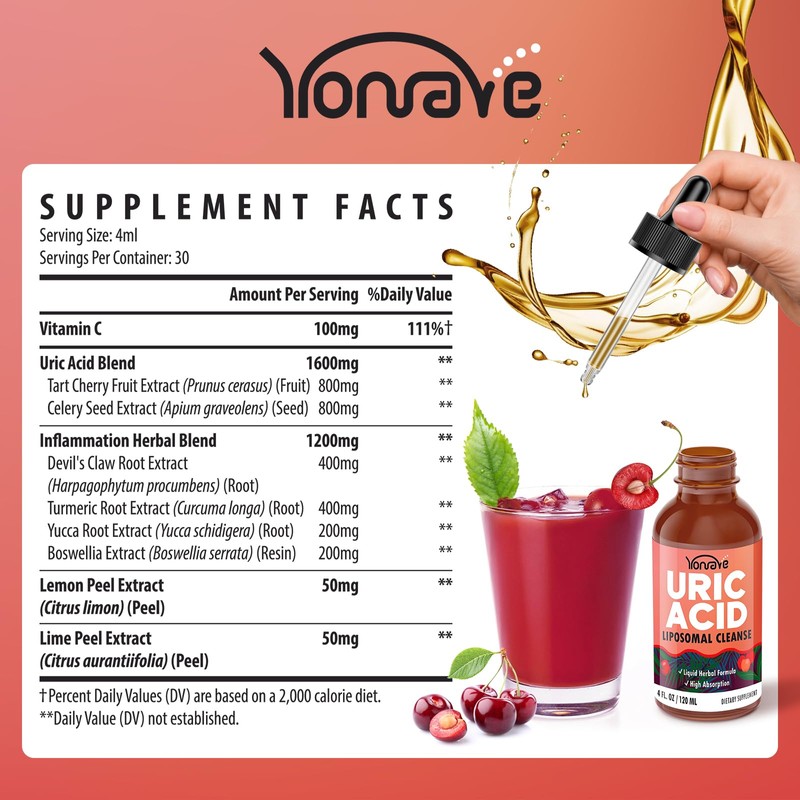 Liposomal Uric Acid Drops, Tart Cherry Supplement with Celery Seed & Boswellia Extract – Muscle, Detox, Joint and Kidney, Uric Acid Cleanse Liquid Supplement– 4 FL OZ (2 Bottle)