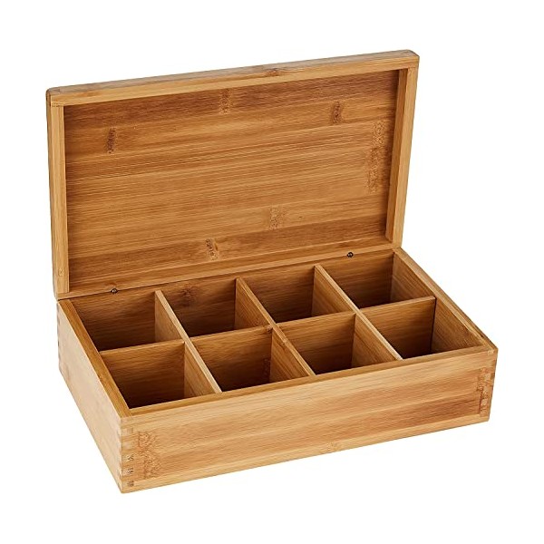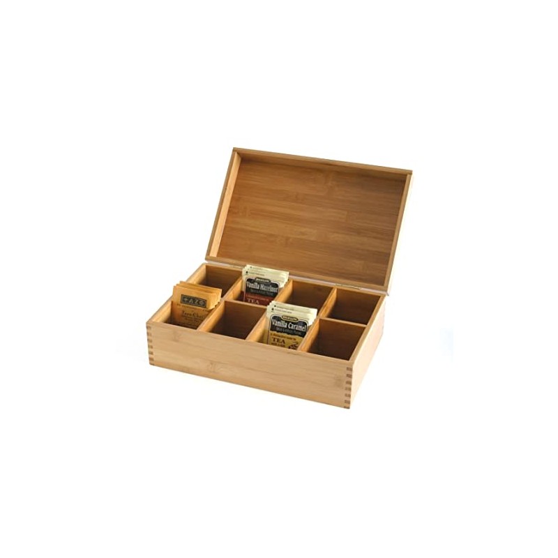 Lipper International Bamboo Wood Tea Box with 8 Compartments, 12-3/8" x 7-3/8" x 3-3/5"