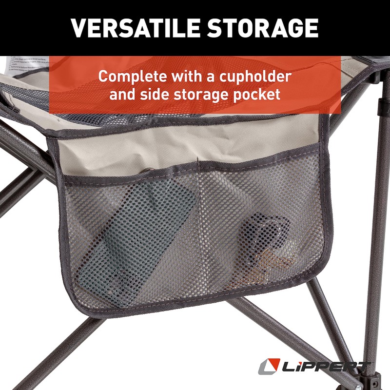Lippert Sun Soaker Two-Position Vented Reclining Camping Chair with Footrest, 600D Polyester Fabric, Mesh Back/Seat, Padded Headrest, Cupholder, 250-lb. Weight Capacity, Sand Color - 2022114829