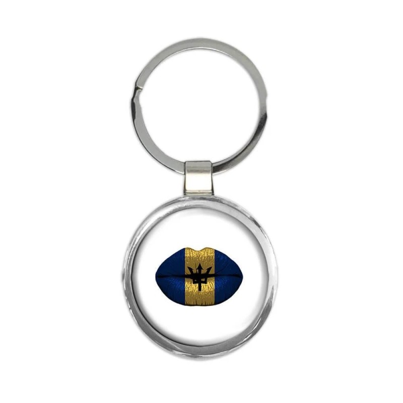 Lips Barbadian Flag : Gift Round Keychain Barbados Expat Country For Her Woman