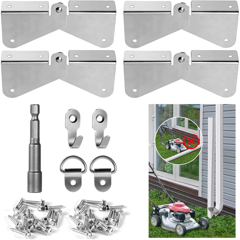 - Product packaging: 4 pieces of gutter extension hinges (2 sets) and 28 screws, 2 hooks and two hanging rings