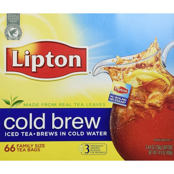 Lipton Cold Brew Black Tea Bags Family Size 22 Count Pack of 3