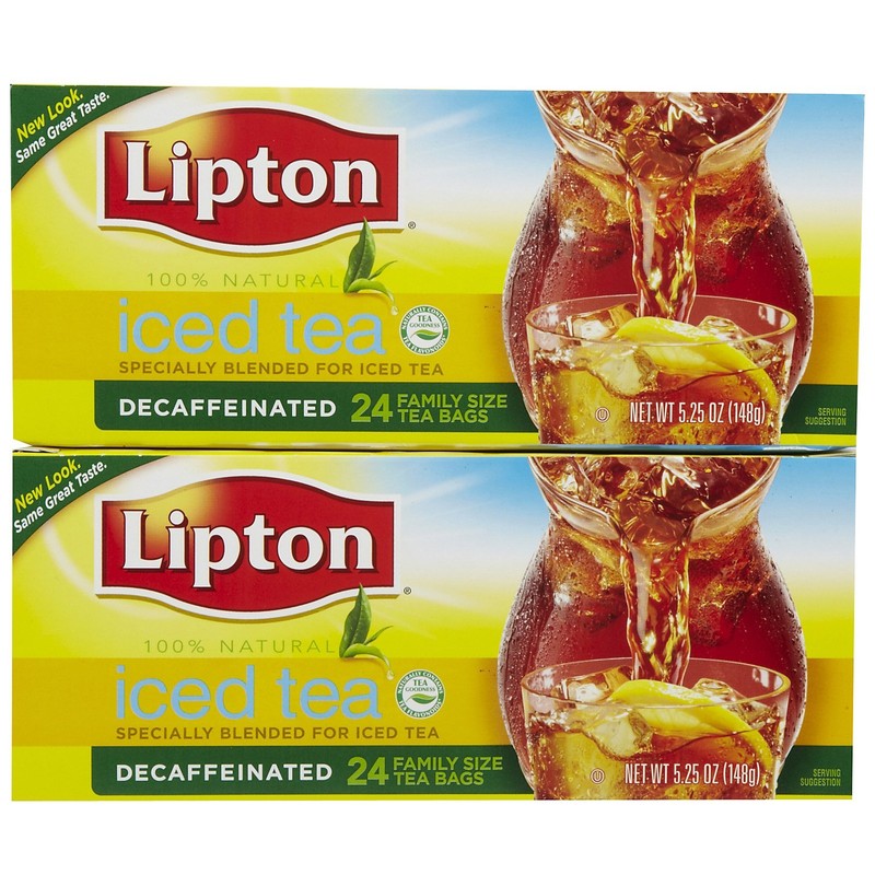Lipton Iced Tea Decaffeinated, Family Size Tea Bags, 24 Count, Pack of 2