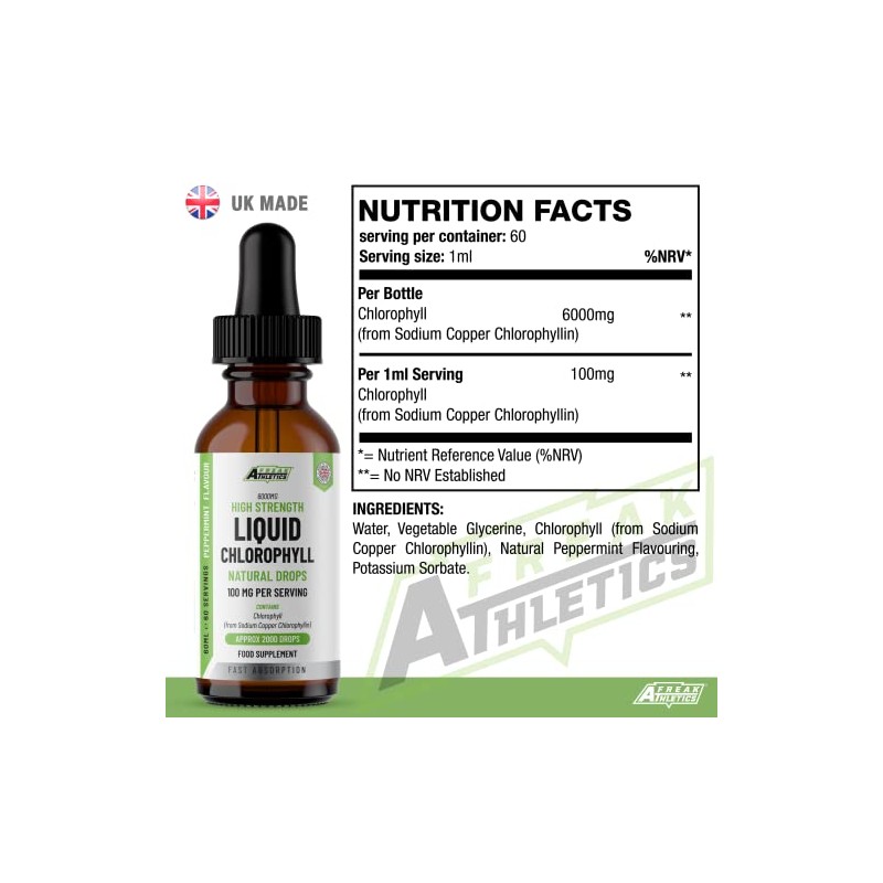 - PREMIUM QUALITY - At Freak Athletics we are highly driven in providing you with the highest quality supplements available on the market. Using only the finest & high quality ingredients to create a premium Liquid Chlorophyll Drop supplement with an optimal dosage.