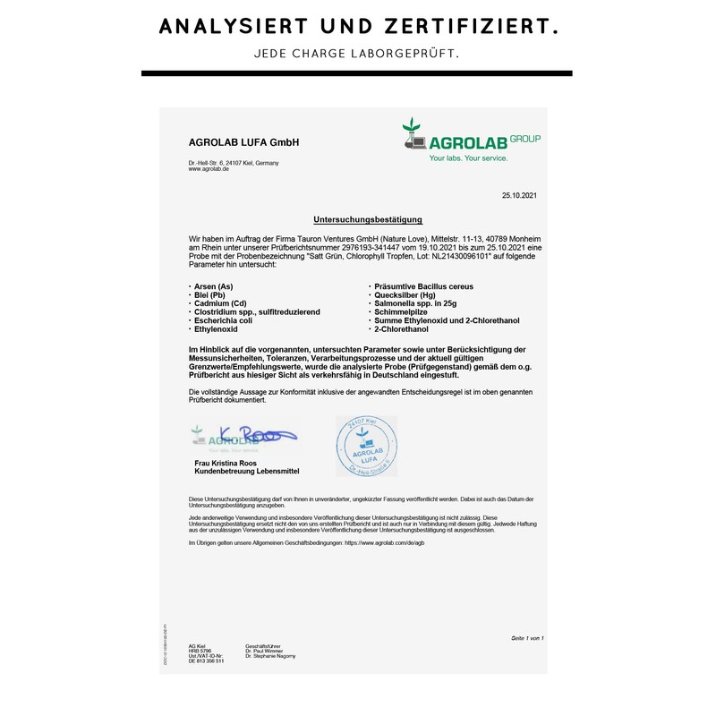 - Every batch is laboratory-tested: what we do is right. That is why we have each production batch controlled by an independent German laboratory. Unlike other manufacturers that only take samples.